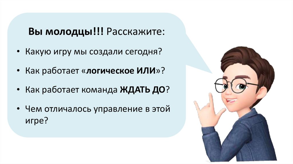 Вы молодцы!!! Расскажите:• Какую игру мы создали сегодня?