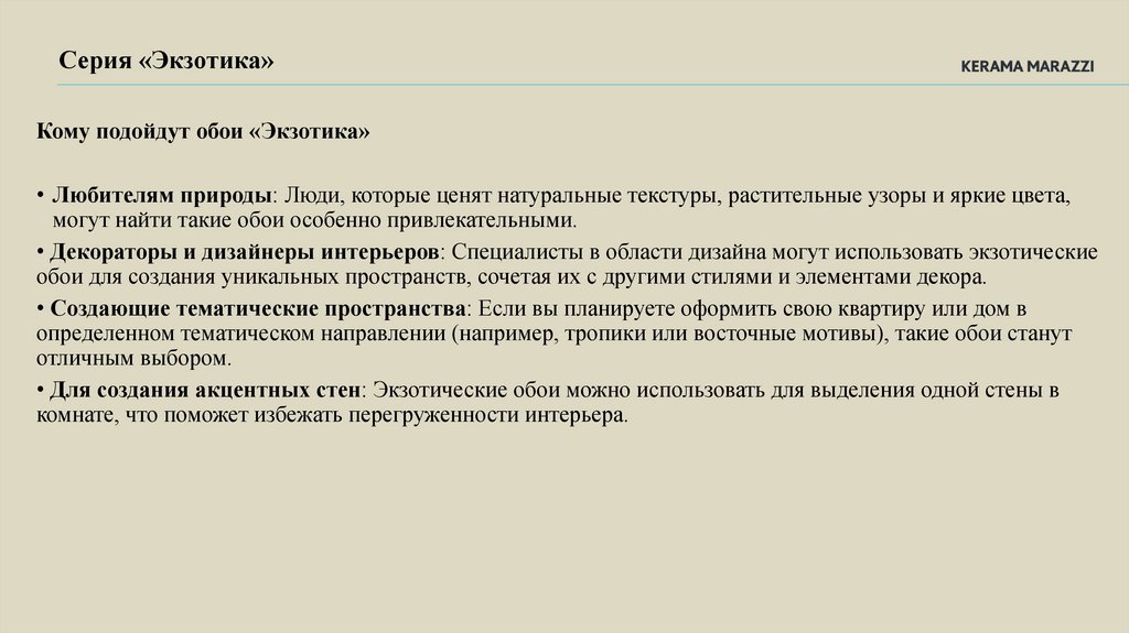 Серия «Экзотика»Кому подойдут обои «Экзотика»