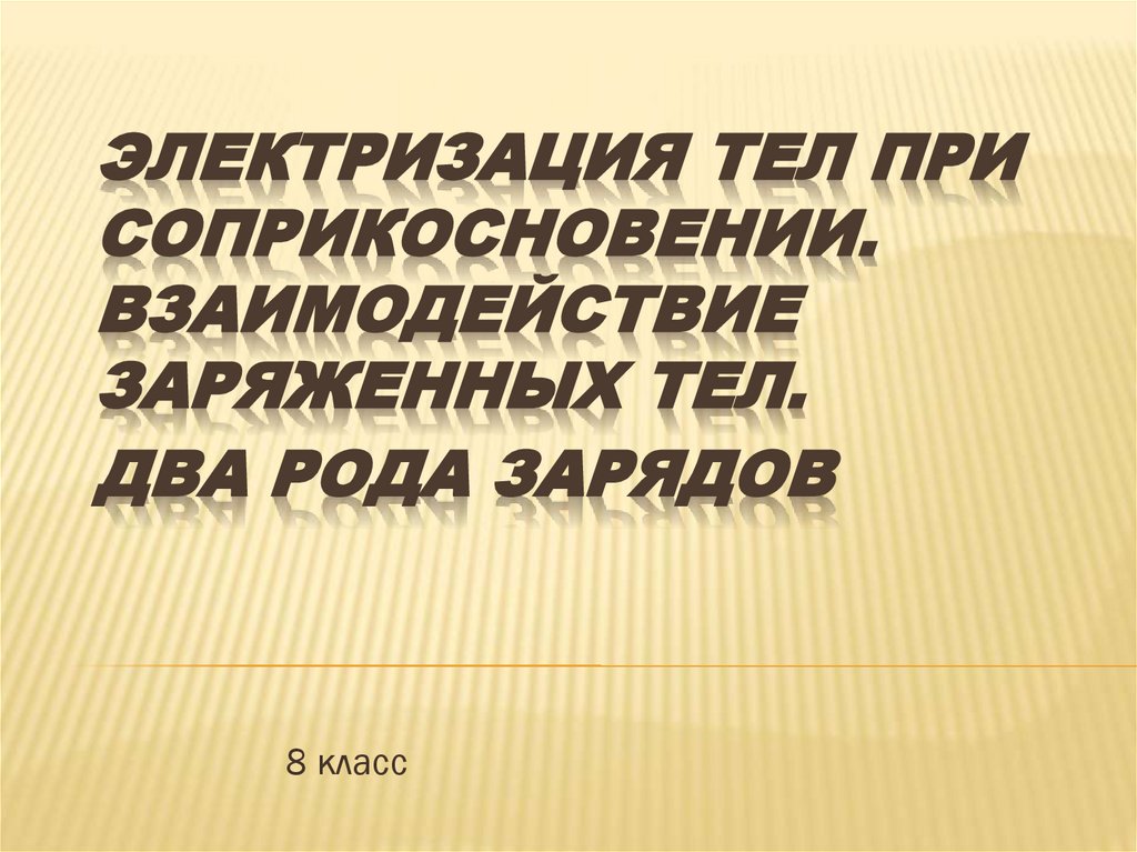 1. Электризация тел при соприкосновении. Взаимодействие заряженных тел. Два рода зарядов