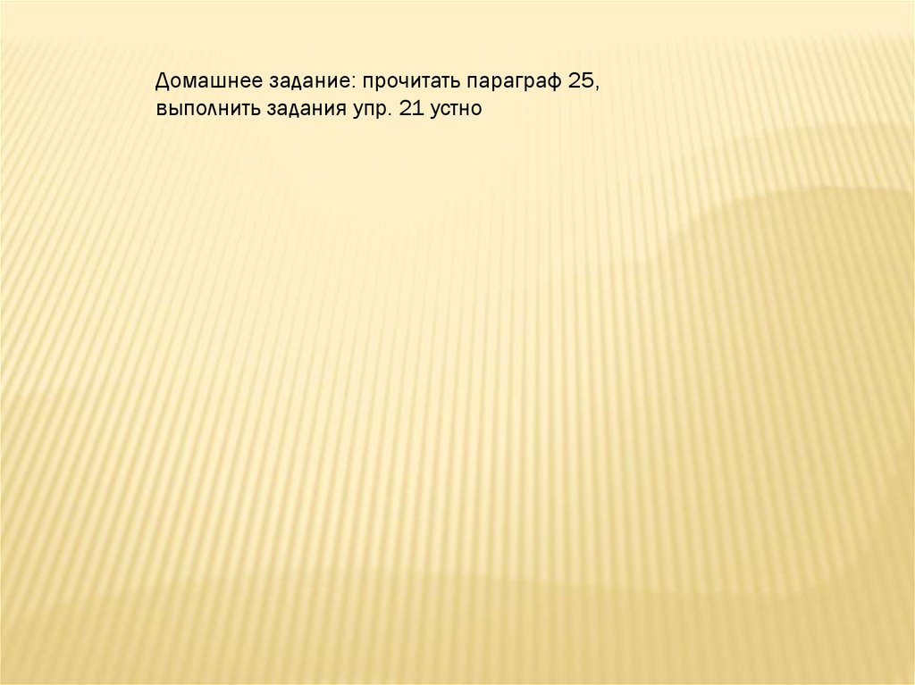 Домашнее задание: прочитать параграф 25,выполнить задания упр. 21 устно