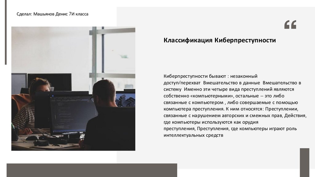 Сделал: Машьянов Денис 7И классаКлассификация Киберпреступности