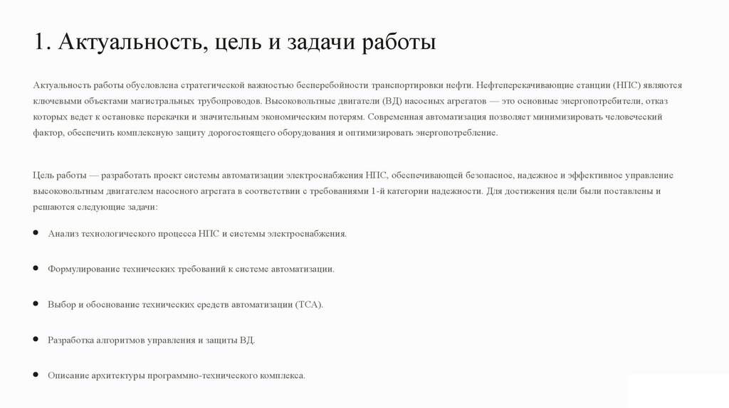 Цель работы — разработать проект системы автоматизации электроснабжения НПС, обеспечивающей безопасное, надежное и эффективное управление