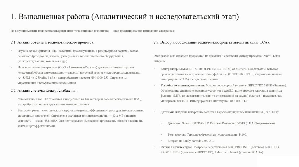 1. Выполненная работа (Аналитический и исследовательский этап)На текущий момент полностью завершен аналитический этап и частично — этап проектирования. Выполнено следующее: