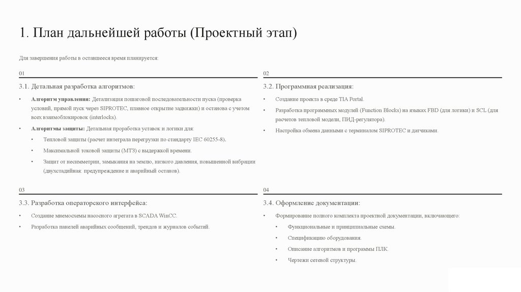 1. План дальнейшей работы (Проектный этап)Для завершения работы в оставшееся время планируется: