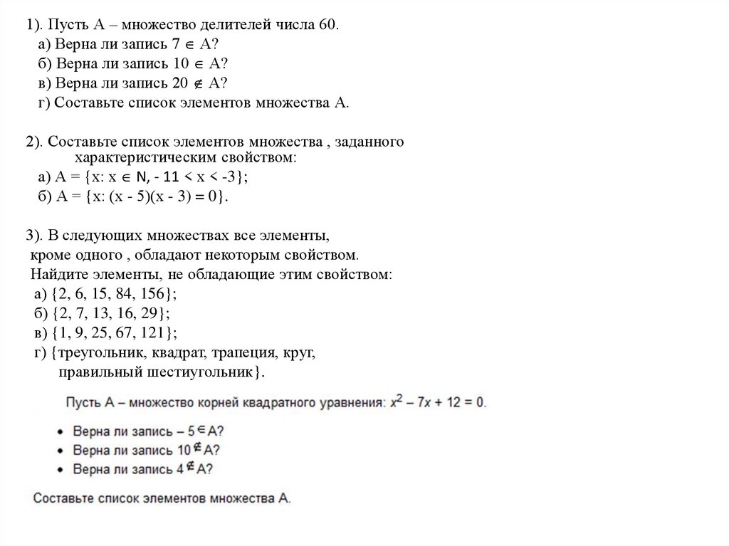 1). Пусть А – множество делителей числа 60.а) Верна ли запись 7 А?
