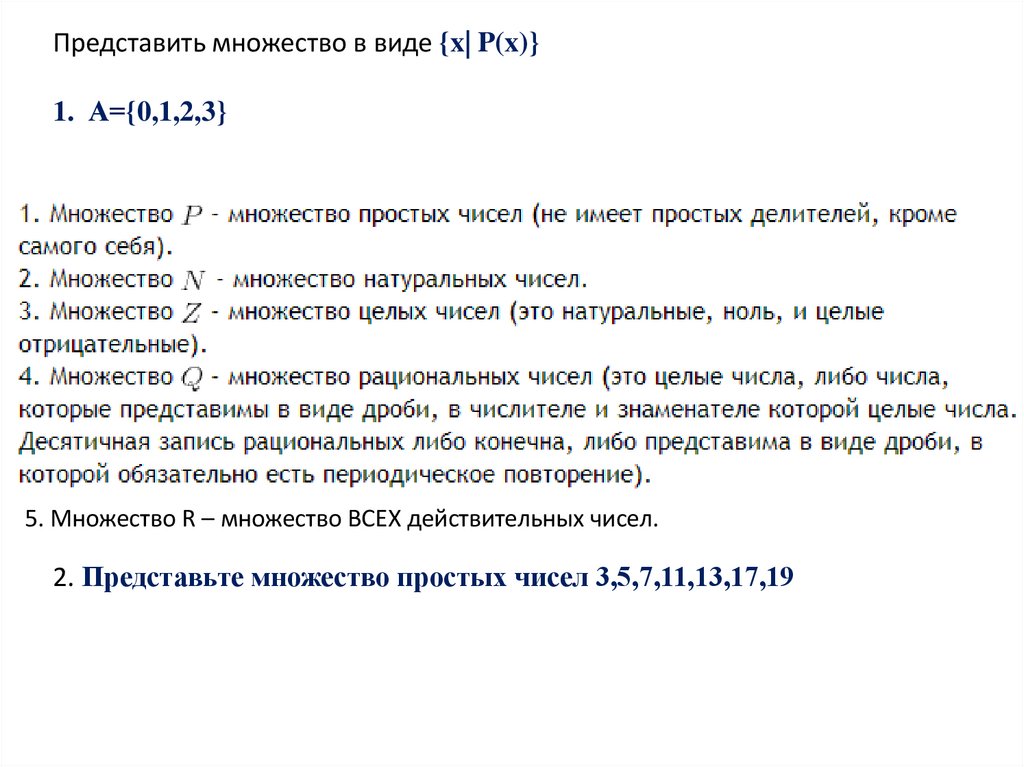Представить множество в виде {x| P(x)}1. А={0,1,2,3}