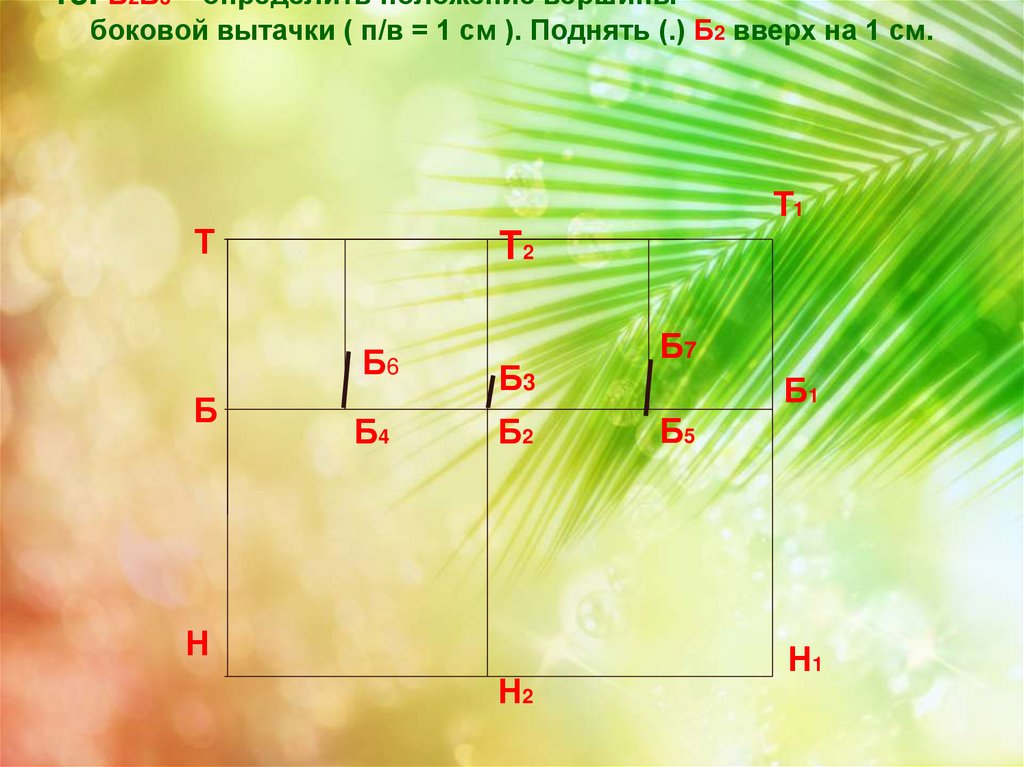 15. Б2Б3 – определить положение вершиныбоковой вытачки ( п/в = 1 см ). Поднять (.) Б2 вверх на 1 см.