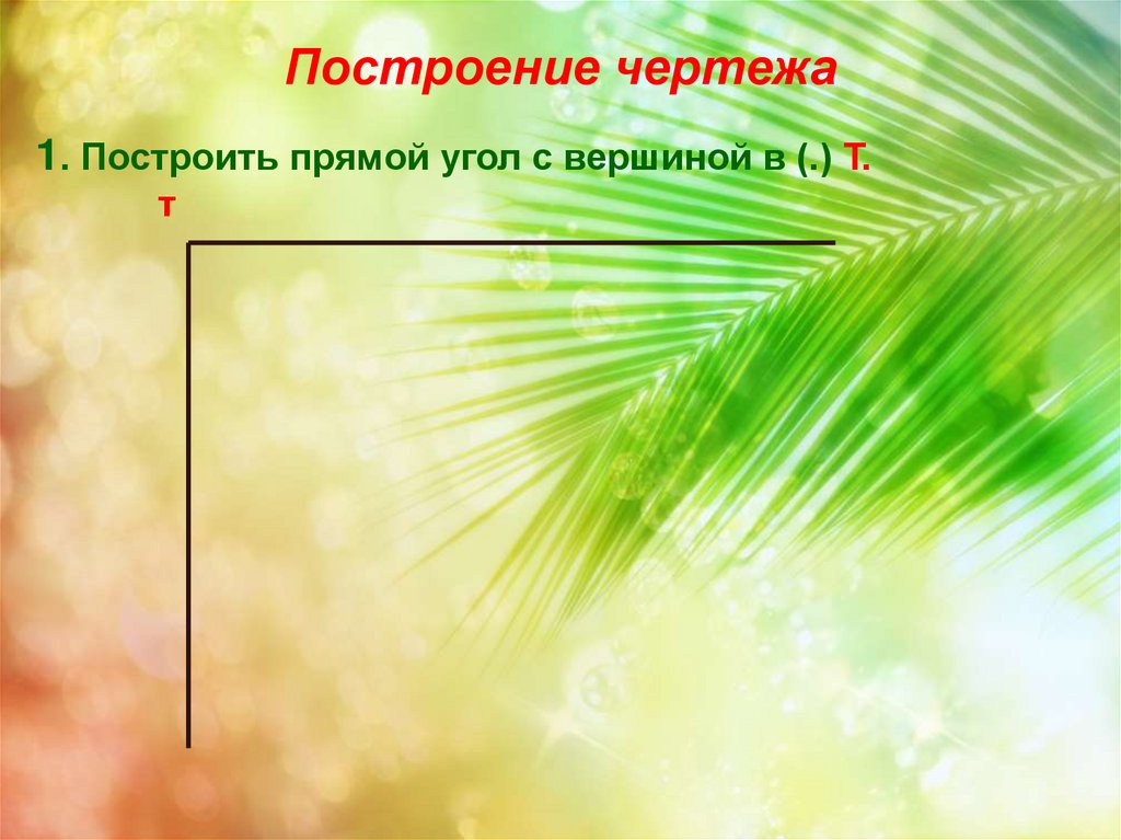 Построение чертежа1. Построить прямой угол с вершиной в (.) Т.