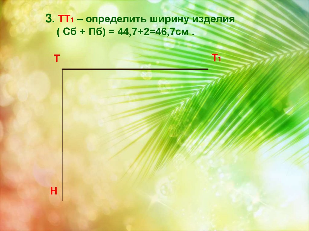 3. ТТ1 – определить ширину изделия( Сб + Пб) = 44,7+2=46,7см .