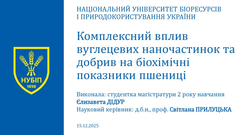 1. Комплексний вплив вуглецевих наночастинок та добрив на біохімічні показники пшениці