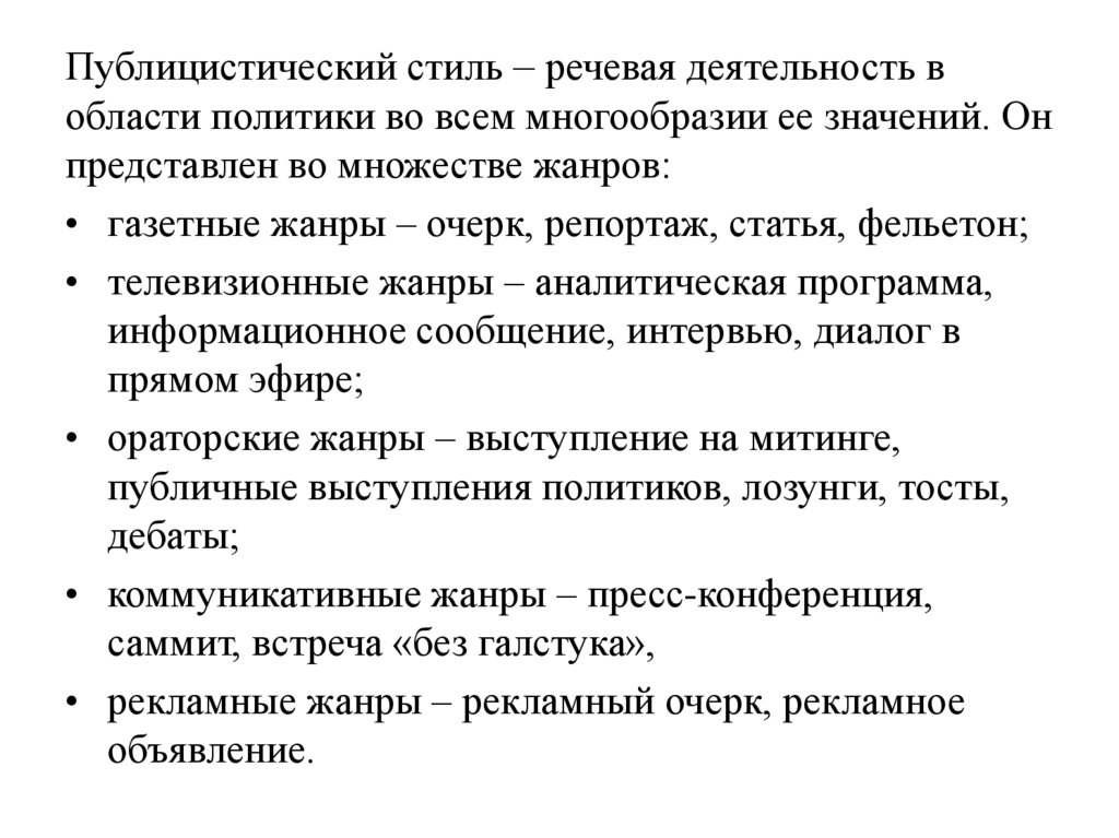 • Какие жанры относятся к публицистическому стилю? Приведите