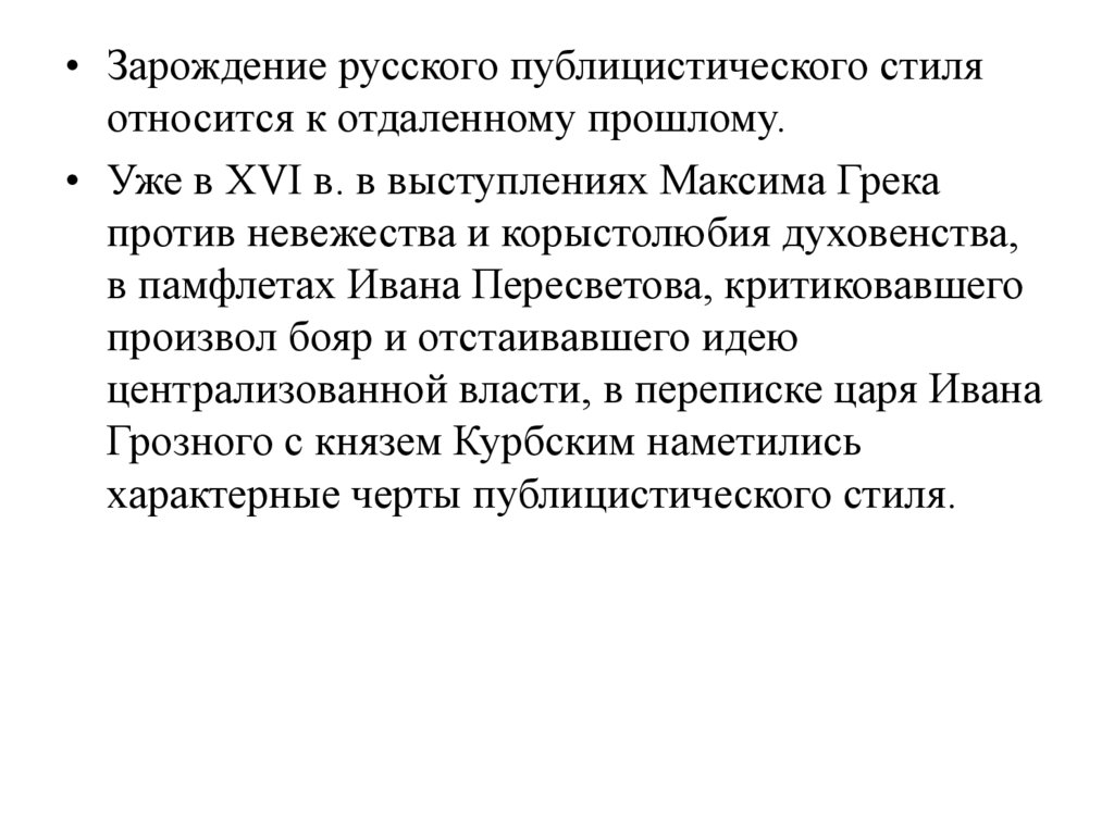 • Зарождение русского публицистического стиляотносится к отдаленному прошлому.