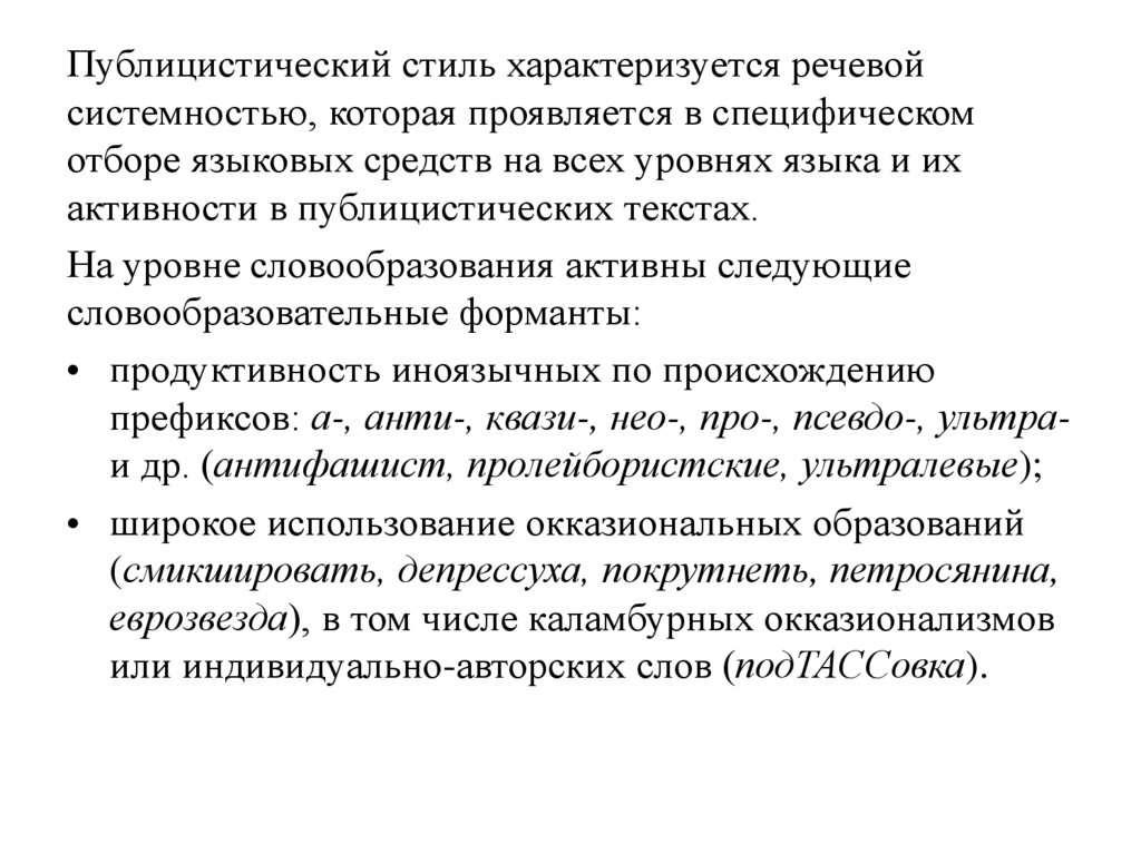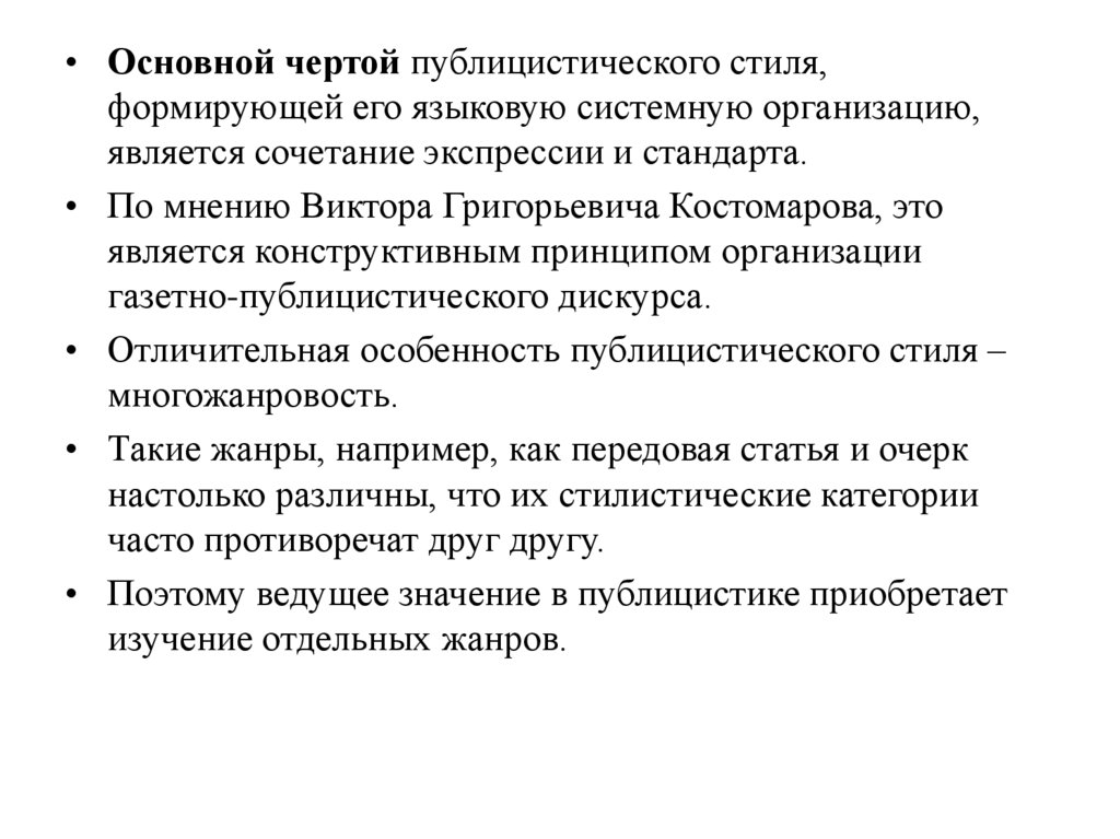 • Основной чертой публицистического стиля,формирующей его языковую системную организацию,