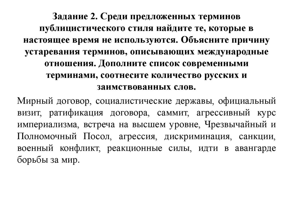 Задание 2. Среди предложенных терминовпублицистического стиля найдите те, которые в