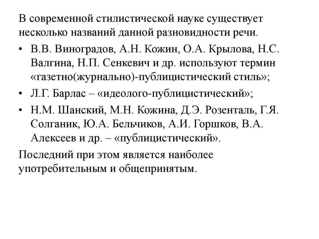 • Л.Г. Барлас – «идеолого-публицистический»;