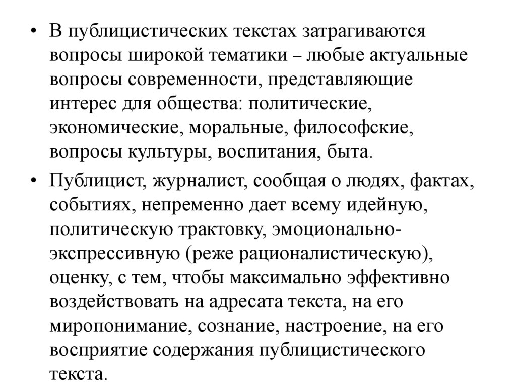 • В публицистических текстах затрагиваютсявопросы широкой тематики – любые актуальные