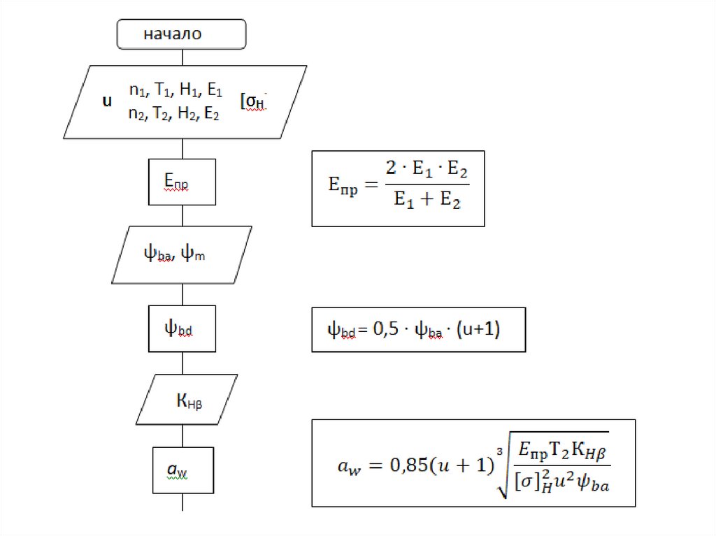 Алгоритм расчета цилиндрической прямозубой передачи