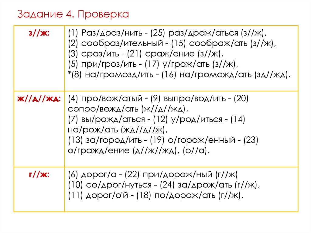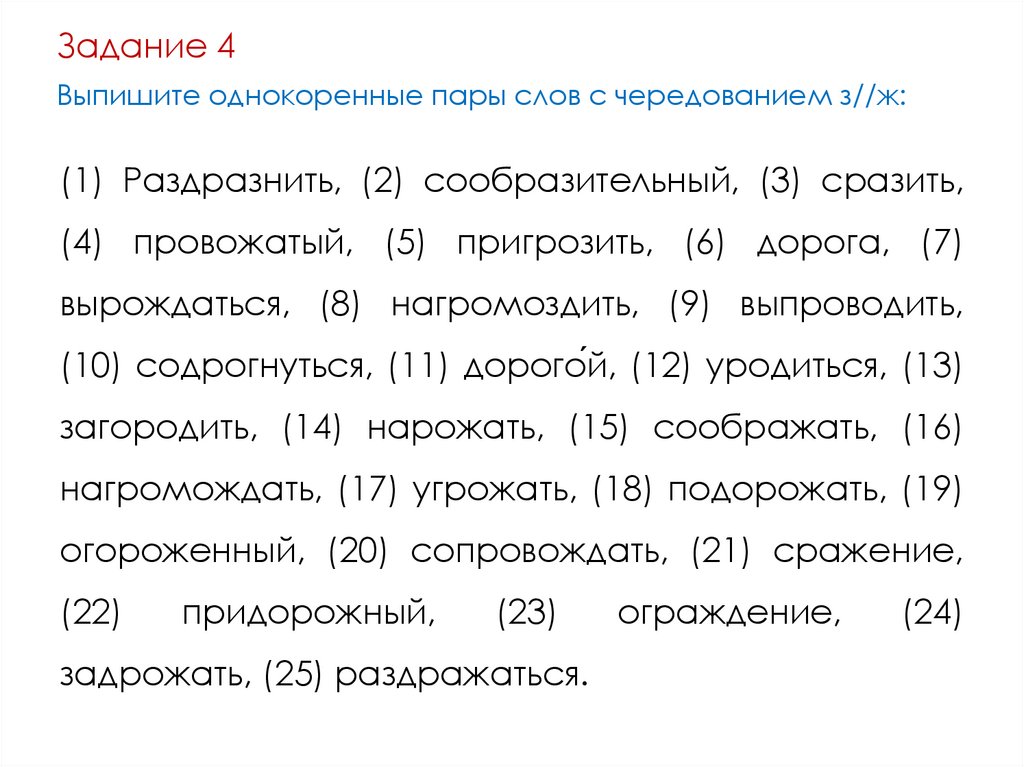 Задание 4Выпишите однокоренные пары слов с чередованием з//ж: