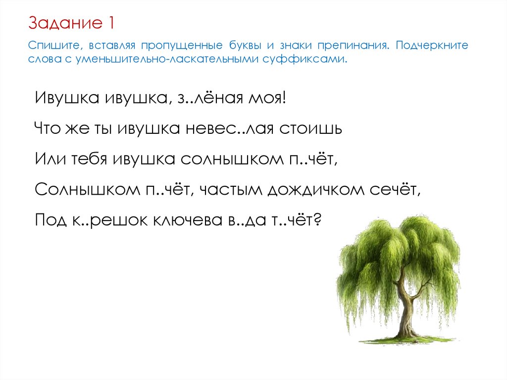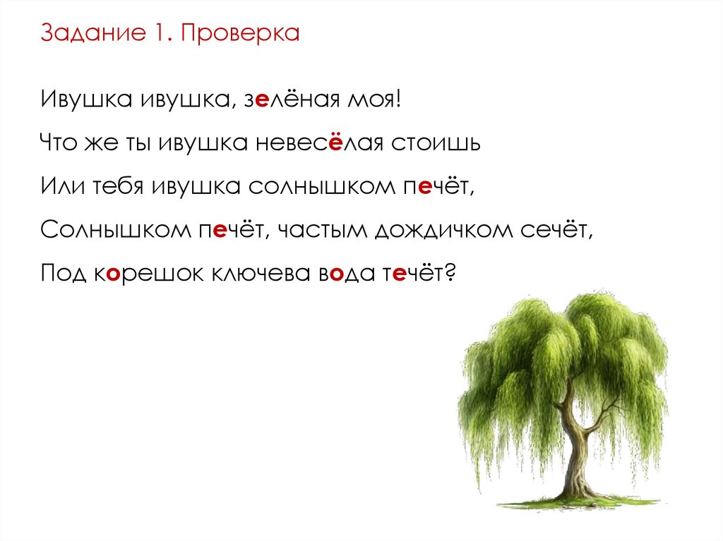 Задание 1. ПроверкаИвушка ивушка, зелёная моя!