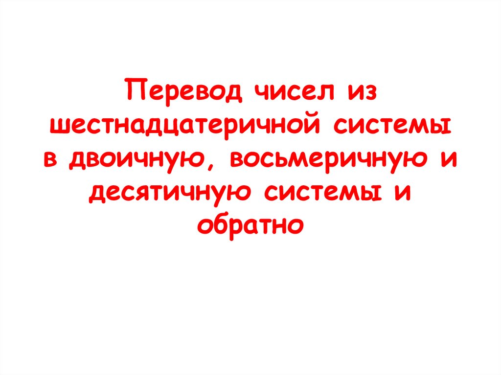 Перевод чисел из шестнадцатеричной системы в двоичную, восьмеричную и десятичную системы и обратно