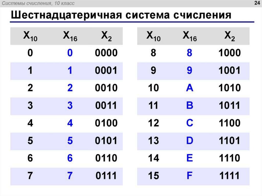 Перевод чисел из шестнадцатеричной системы в двоичную_