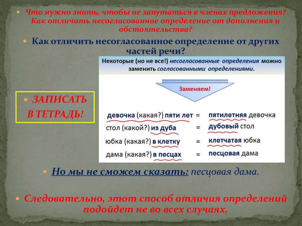 Что нужно знать, чтобы не запутаться в членах предложения?Как отличить несогласованное определение от дополнения и