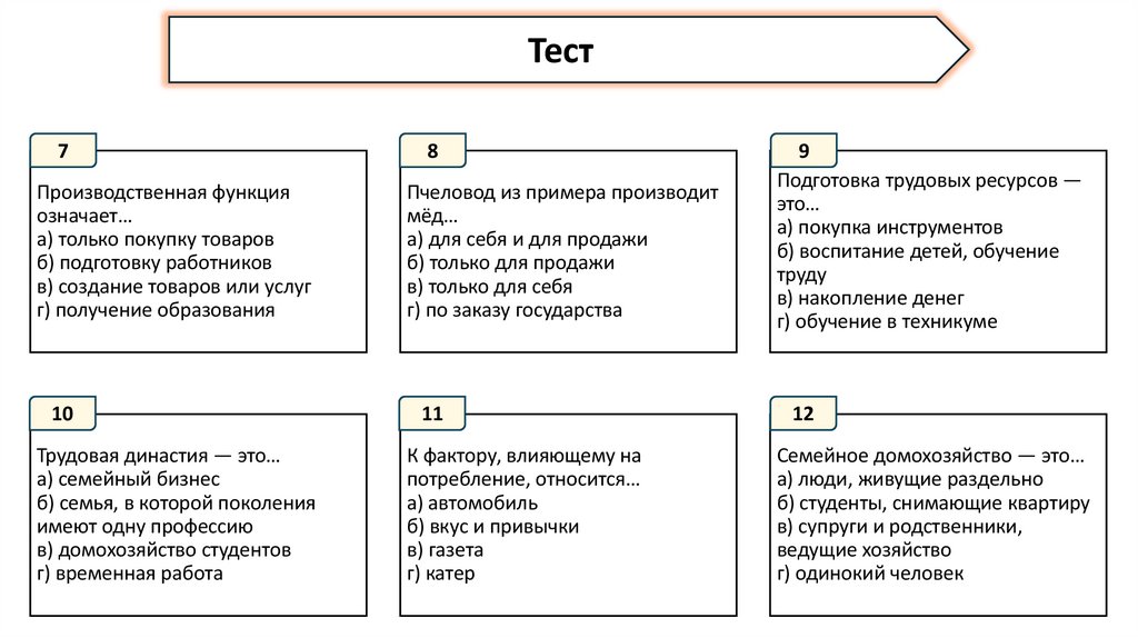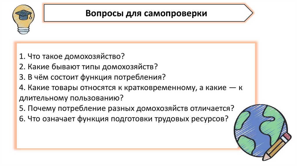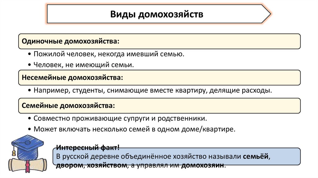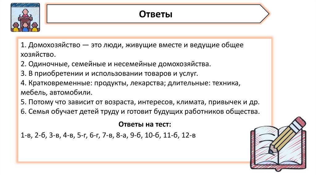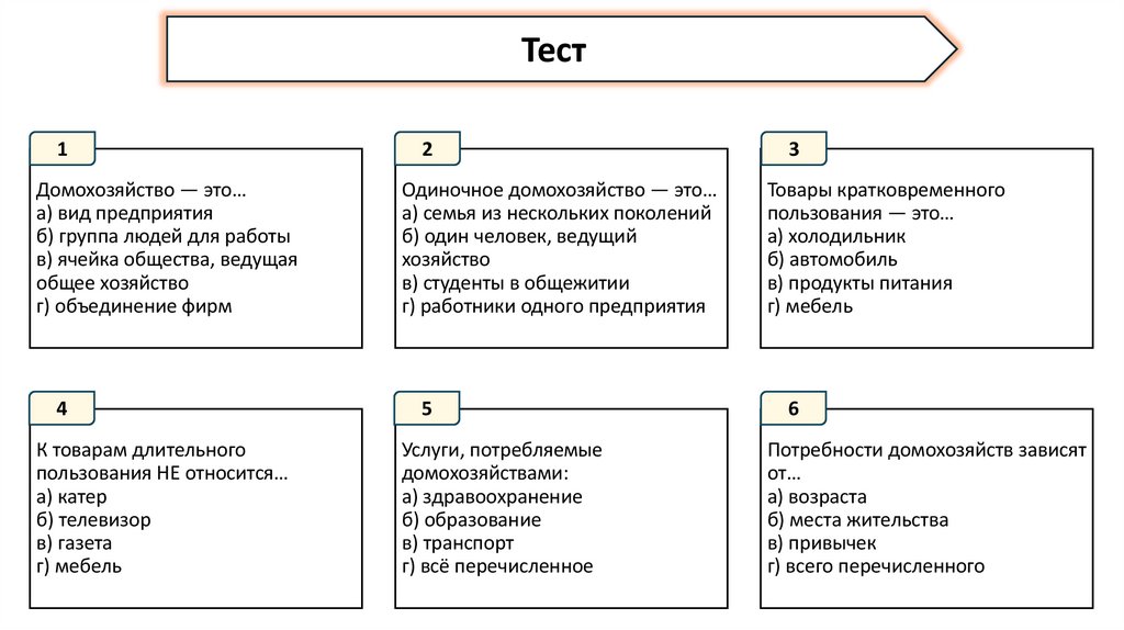 Ответы1. Домохозяйство — это люди, живущие вместе и ведущие общее