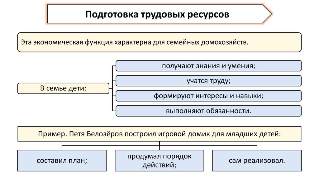 Подготовка трудовых ресурсовЭта экономическая функция характерна для семейных домохозяйств.