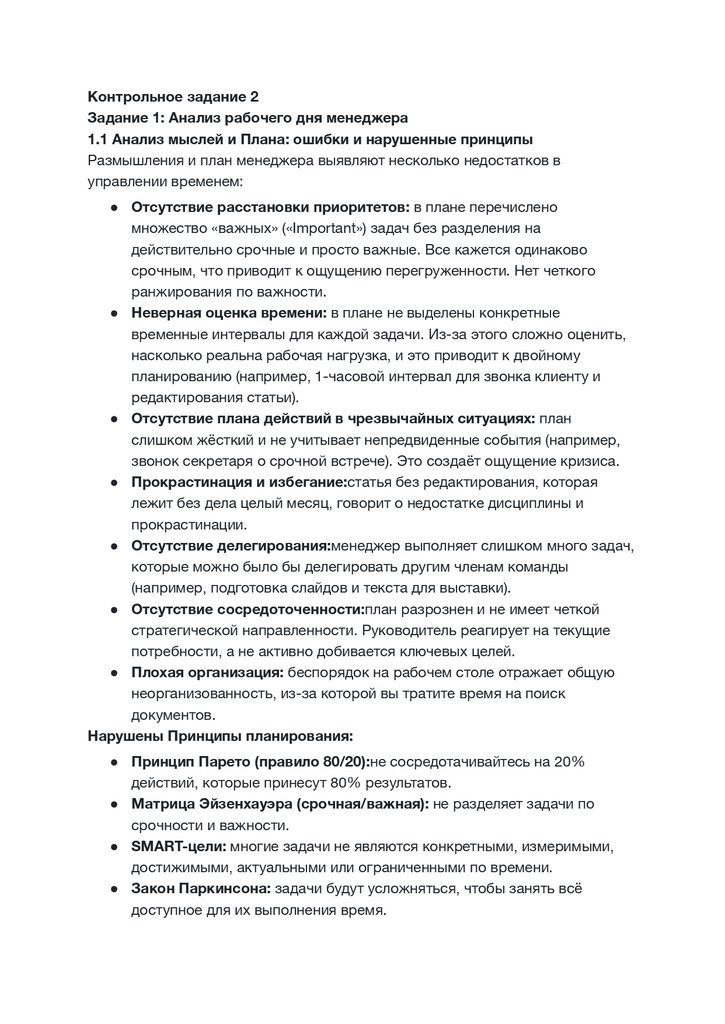 Контрольное задание 2Задание 1: Анализ рабочего дня менеджера