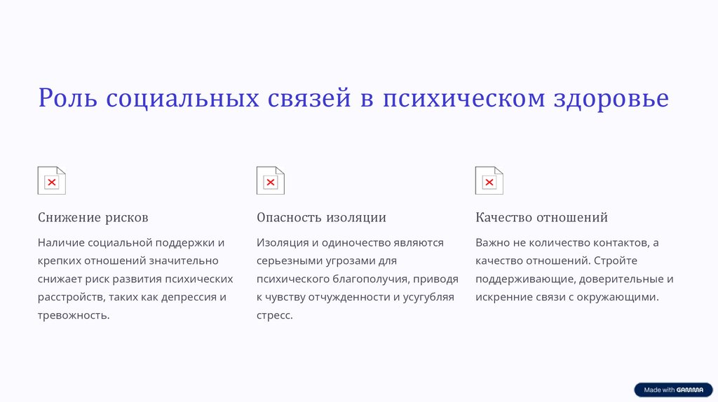 Роль социальных связей в психическом здоровьеСнижение рисков