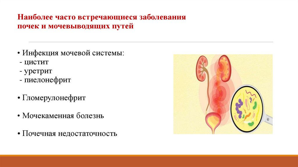 Наиболее часто встречающиеся заболеванияпочек и мочевыводящих путей