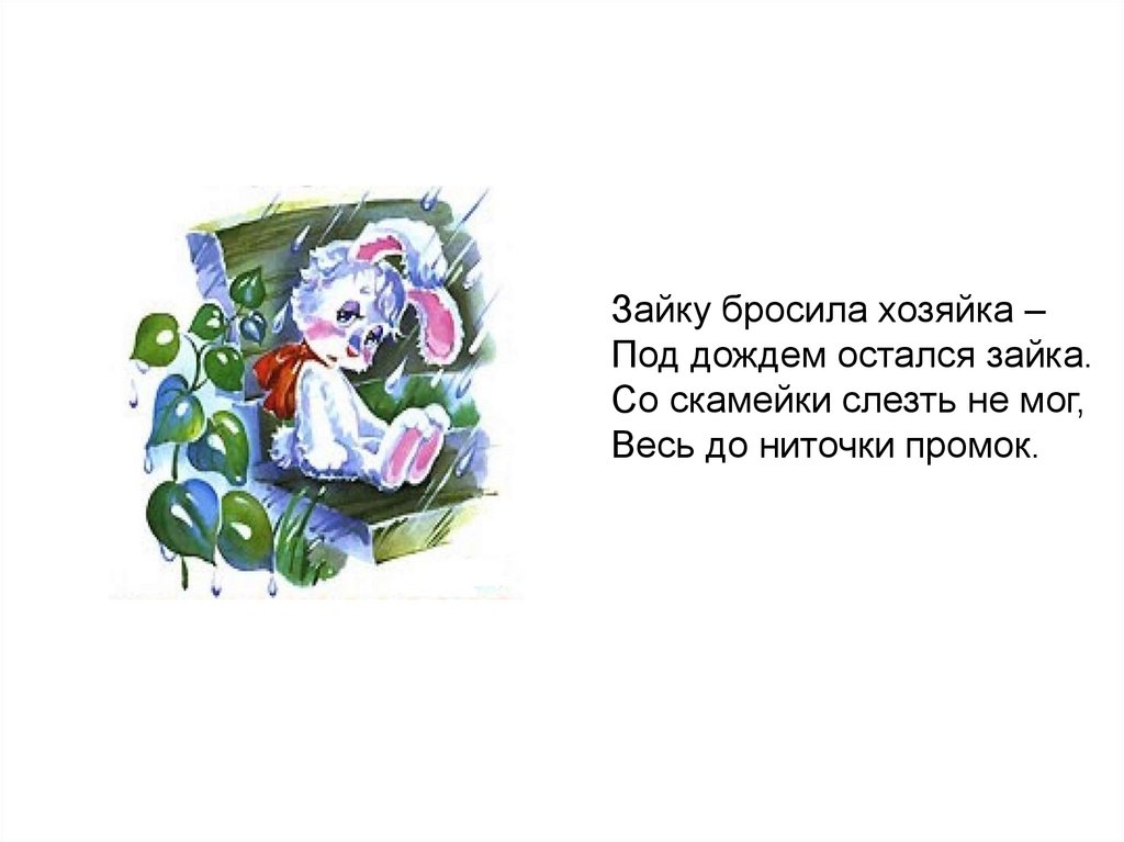 Зайку бросила хозяйка –Под дождем остался зайка.