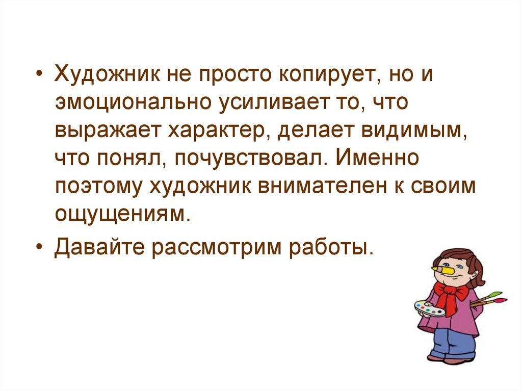 • Художник не просто копирует, но иэмоционально усиливает то, что