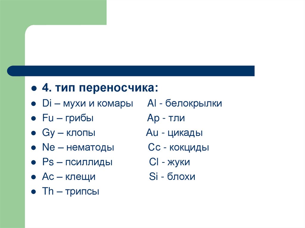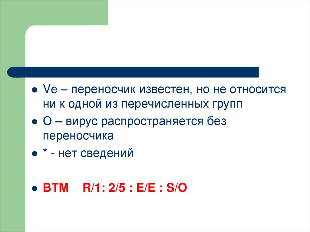 Ve – переносчик известен, но не относитсяни к одной из перечисленных групп