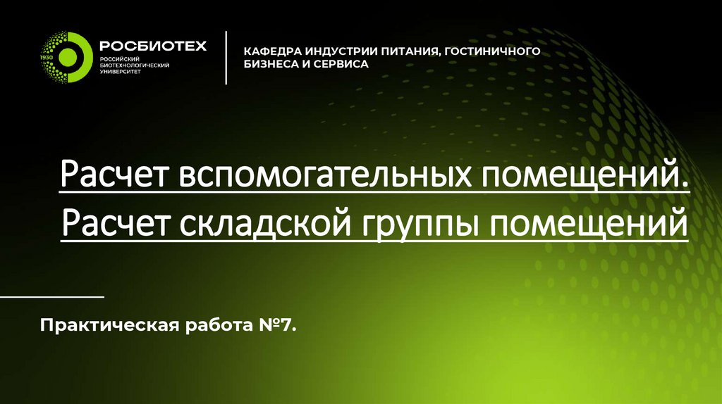 КАФЕДРА ИНДУСТРИИ ПИТАНИЯ, ГОСТИНИЧНОГОБИЗНЕСА И СЕРВИСА
