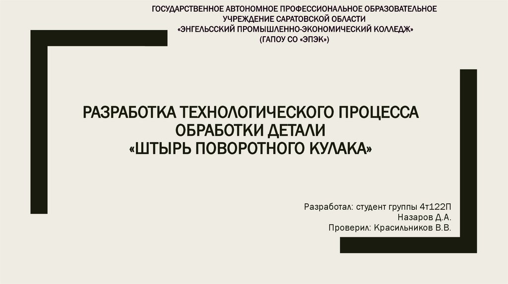 РАЗРАБОТКА ТЕХНОЛОГИЧЕСКОГО ПРОЦЕССА