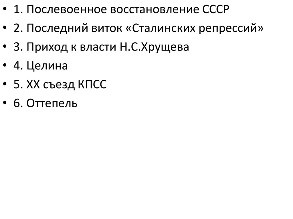 Тема 16. Апогей и кризис советской системы 1945-1991 гг. Правление Н.С. Хрущева