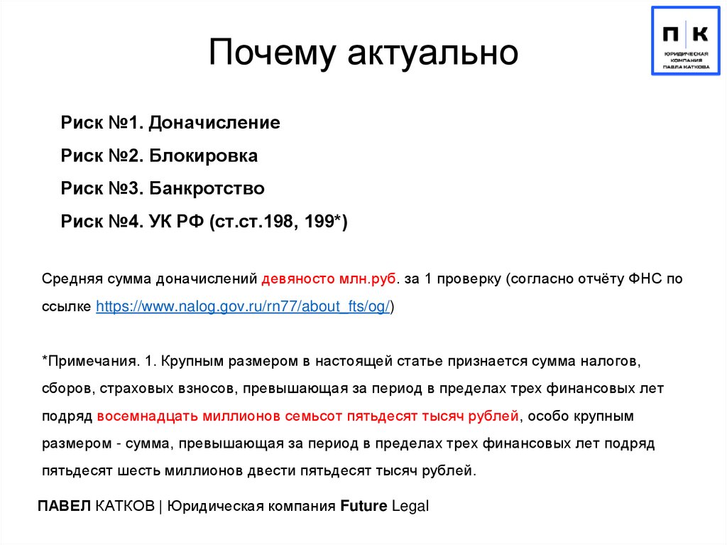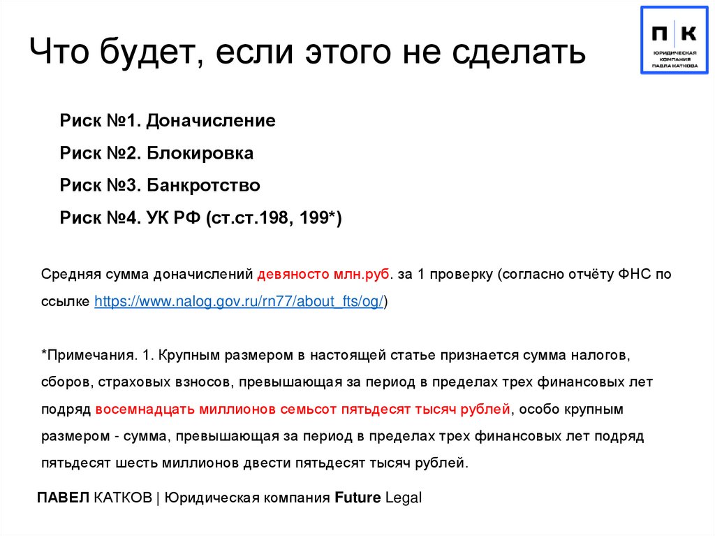 Что будет, если этого не сделатьРиск №1. Доначисление