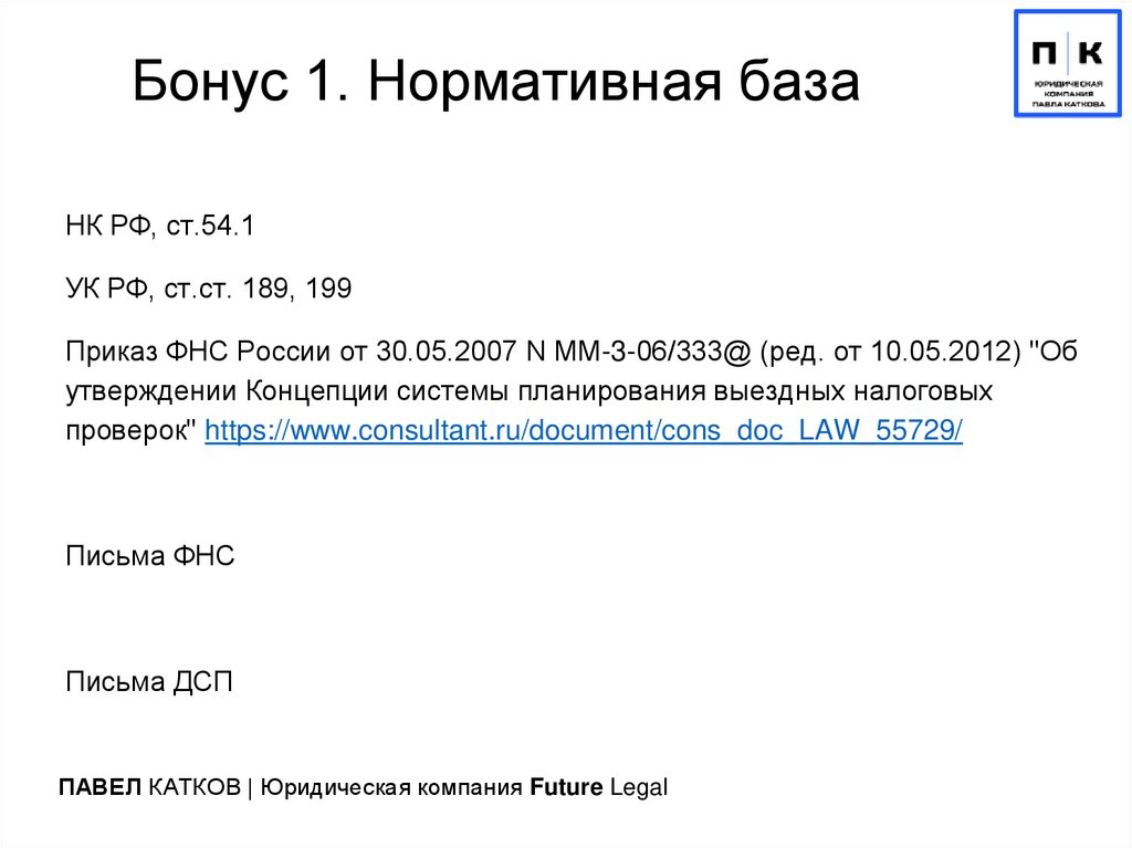 Бонус 1. Нормативная базаНК РФ, ст.54.1