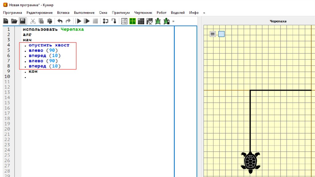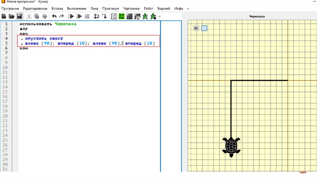 1. Узнать об исполнителе Черепаха.2. Познакомиться с системой команд исполнителя