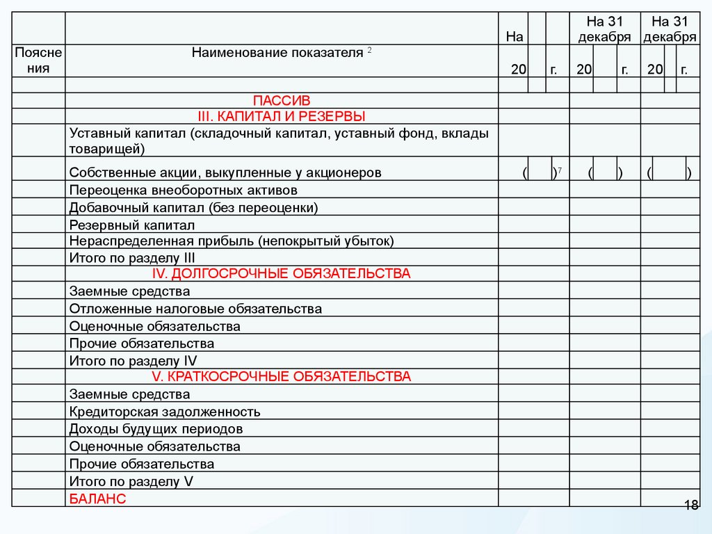 • Пояснения к бухгалтерскому балансу и отчету о финансовых