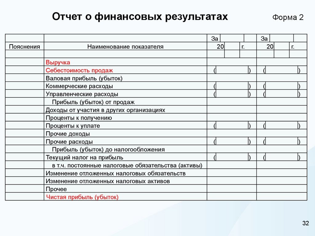 • Отчет о финансовых результатах (ОКУД 0710002)