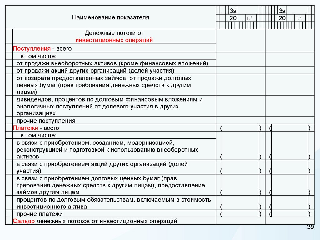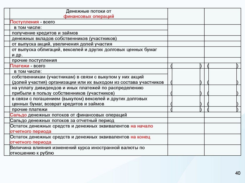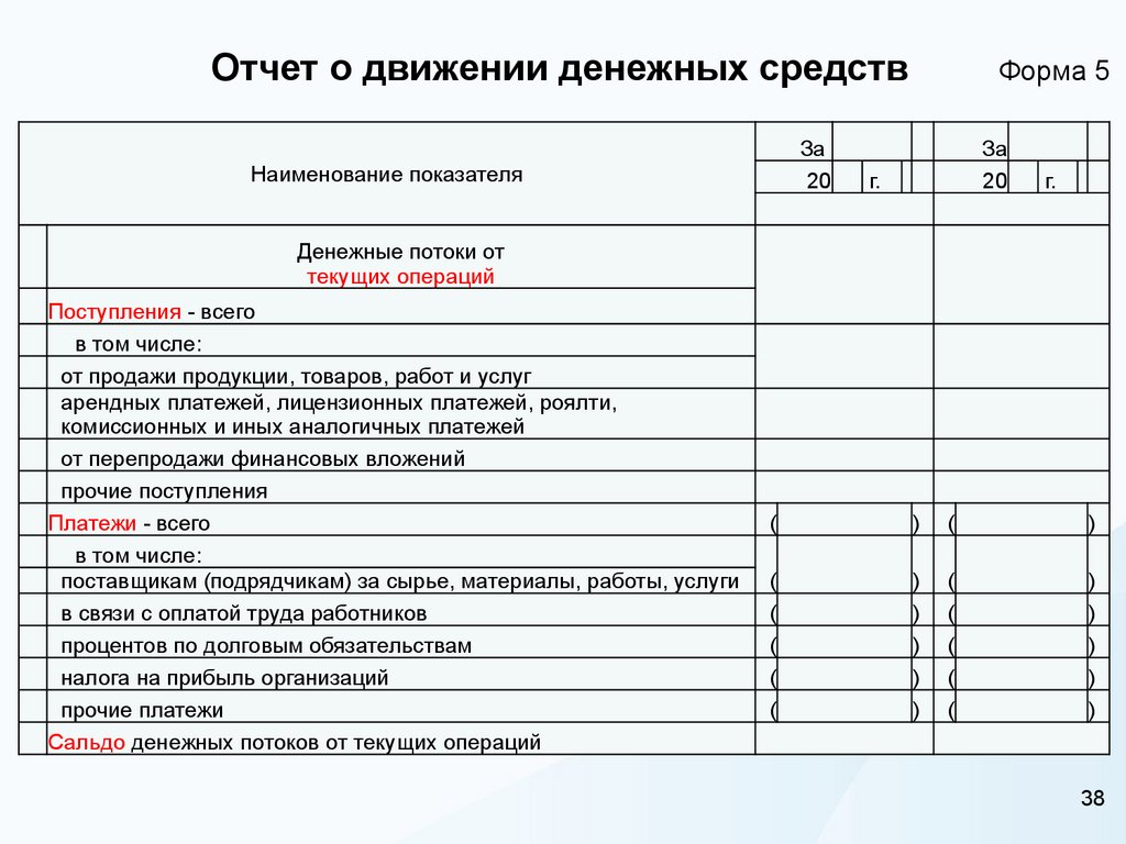 • Отчет о движении денежных средств (ОКУД 0710005)