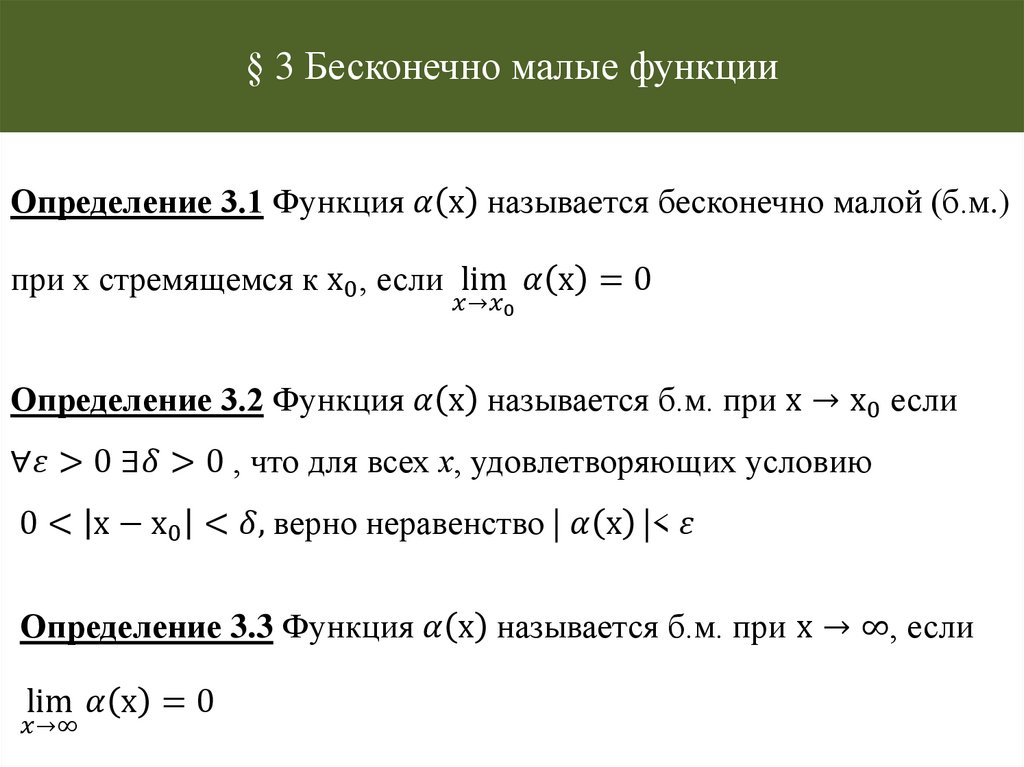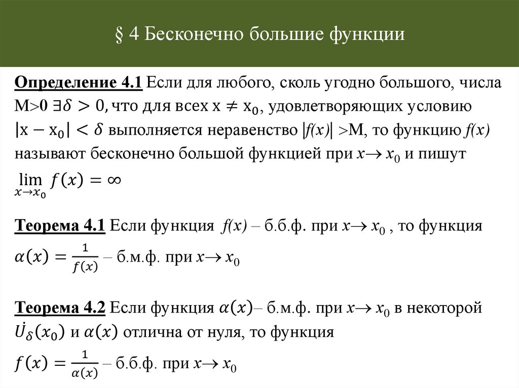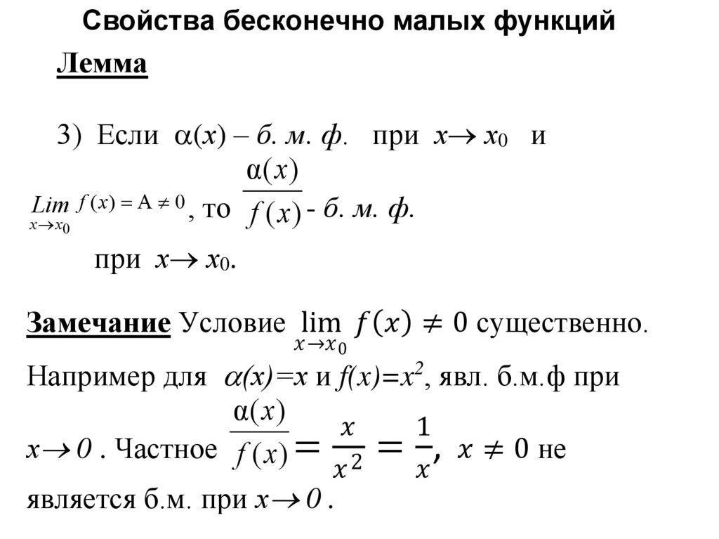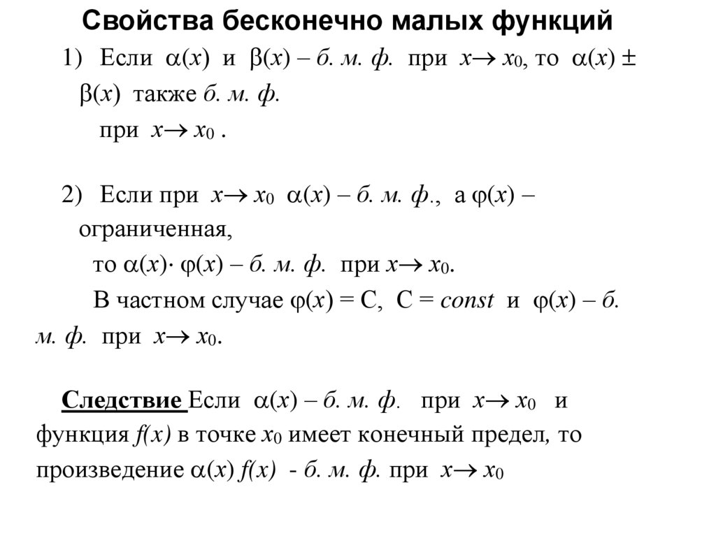 Бесконечно малые, бесконечно большие функции, их свойства. Теоремы о пределе функции, замечательные пределы
