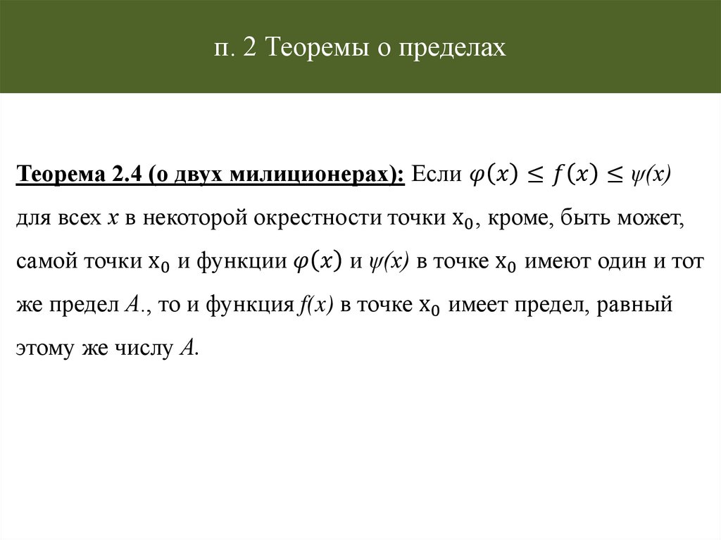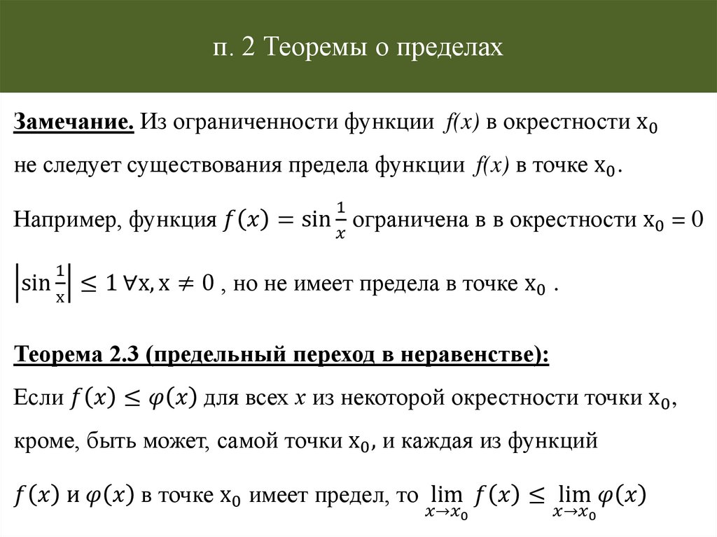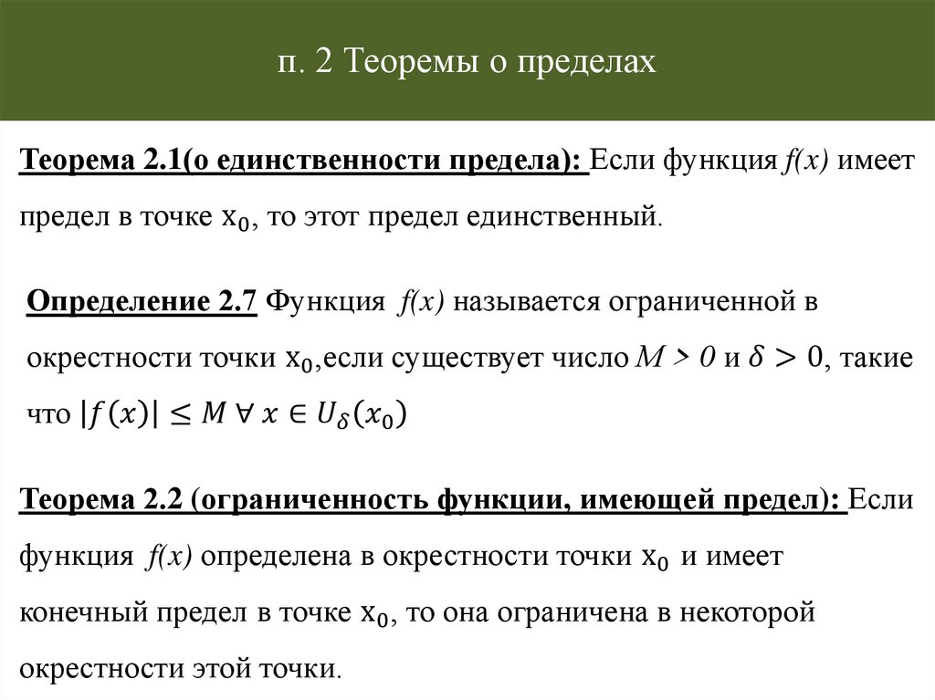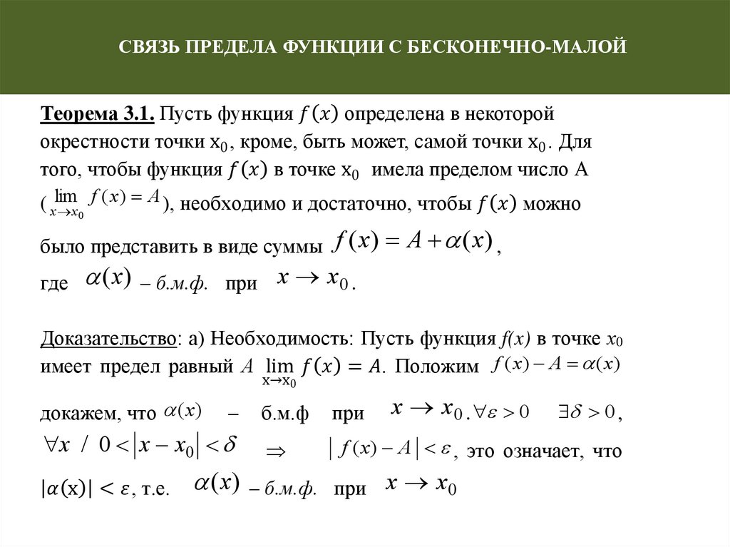 Бесконечно малые, бесконечно большие функции, их свойства. Теоремы о пределе функции, замечательные пределы