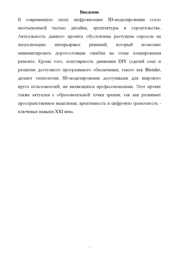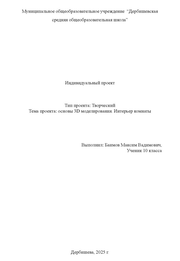 Тема проекта: основы 3D моделирования. Интерьер комнаты
