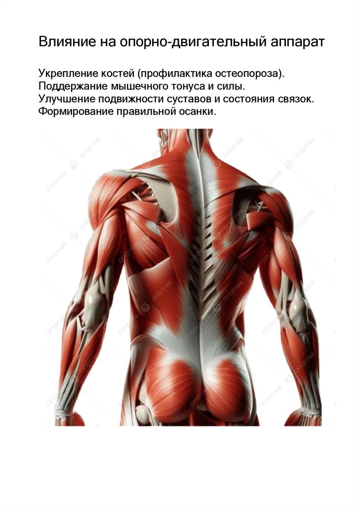 Влияние на опорно-двигательный аппаратУкрепление костей (профилактика остеопороза).