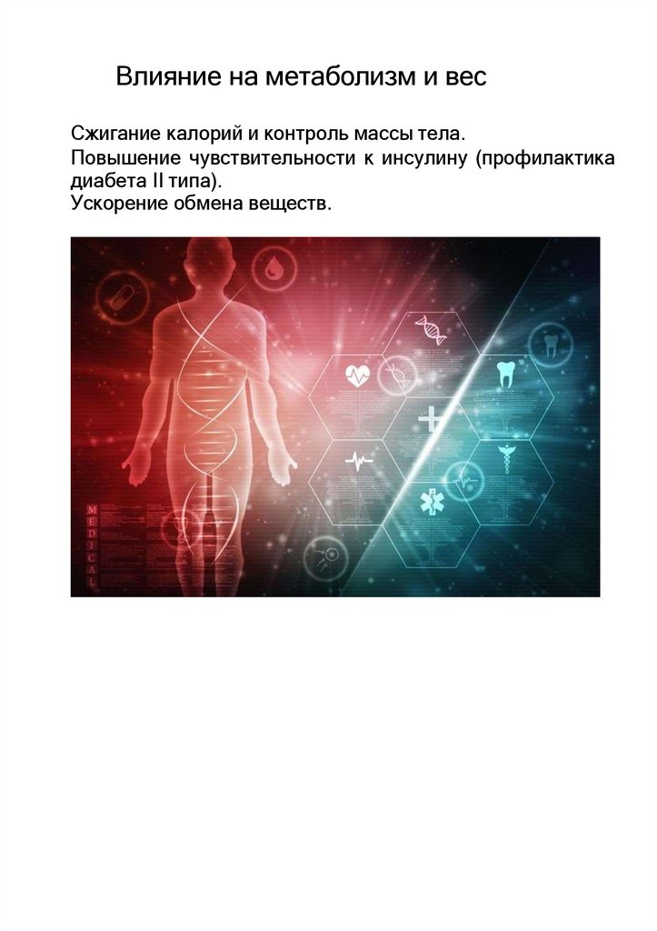 Влияние на метаболизм и весСжигание калорий и контроль массы тела.