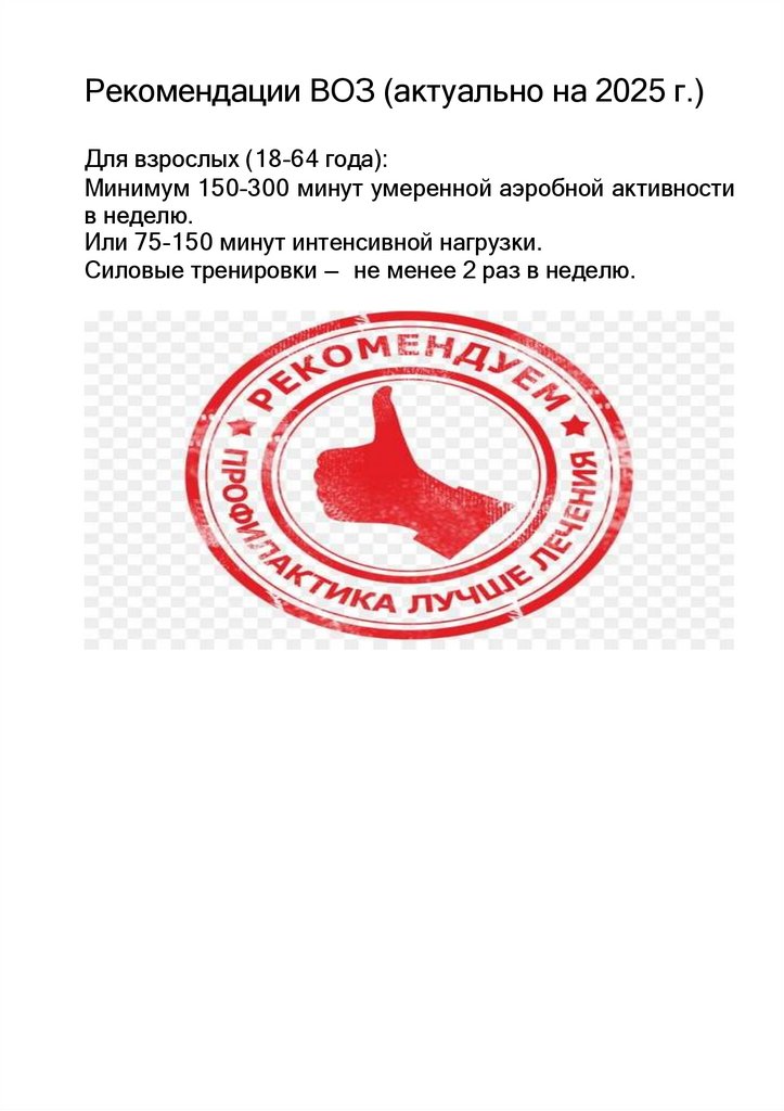 Рекомендации ВОЗ (актуально на 2025 г.)Для взрослых (18–64 года):