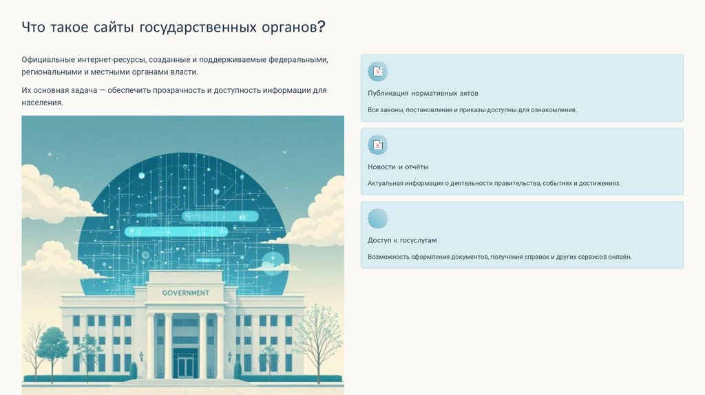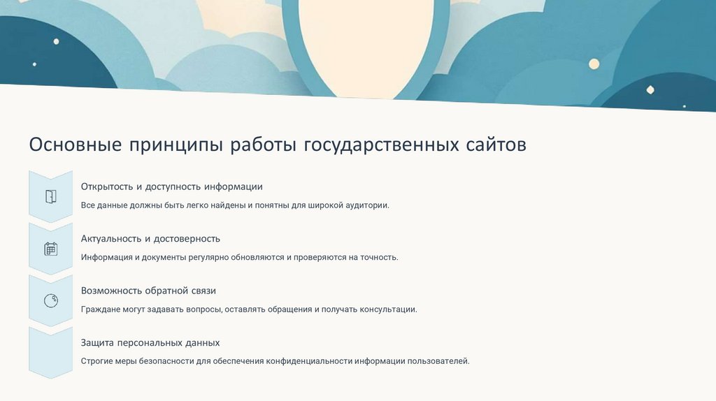 Основные принципы работы государственных сайтовОткрытость и доступность информации